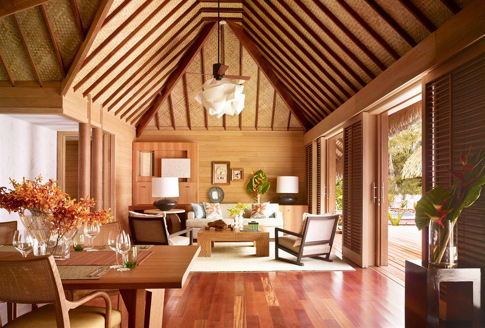 Toate bungalow-urile au caracteristici speciale ce includ: usi glisante si bai spatioase, pentru ca oaspetii sa se bucure de vederi panoramice la laguna si aer curat, camera de zi separata si dormitor, baie cu dus separat, uscator de par, halat de baie, televizor cu ecran plat, telefon CD / DVD player , iPod docking station, Internet  prin cablu sau wireless, minibar, seif, aer conditionat, perne hipoalergice, curatenie de doua ori pe zi in camera, cafea si ceai din partea casei, precum si terasa cu vedere la apele turcoaz ale lagunei si la Muntele Otemanu. Toate camerele sunt dotate cu echipament de snorkeling gratuit.