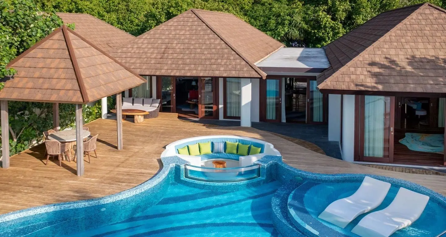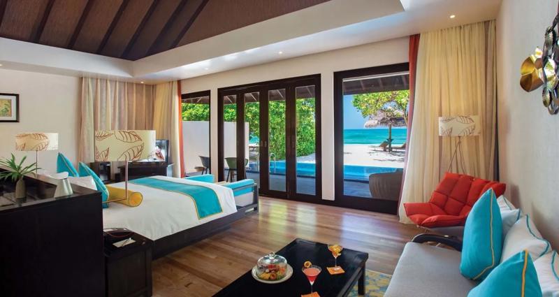 • Sunset Water Villa with Pool – (125 m²) vile cu vedere partiala spre laguna si spre mare. Au aceleasi facilitati, terasa fiind completata de o piscina privata.