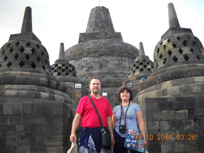 A doua zi, dimineata devreme (trezirea la 5.30), am parasit cu regret hotelul, de a carui facilitati nu am apucat sa ne bucuram (nici macar de micul dejun nu am avut timp). Am ajuns cu bine in Yogyakarta-insula Java, unde era soare, caldura si umezeala mare. Am vizitat cel mai mare templu budist din lume-Bodobodur si cel mai mare templu hindus din lume-Prambanan, care ne-a placut cel mai mult. Au fost spectaculoase amandoua, imense, incarcate de istorie si religie, despre care ghida noastra Noni, ne-a povestit o multime de lucruri interesante si inedite. La hotelul Novotel a fost de asemenea super, dar n-am avut, din nou, timp sa ne bucuram de el (piscina, terase, mic dejun, etc). Am ajuns cu bine si in Denpasar, capitala Bali-ului unde am fost asteptati de ghidul nostru (care avea un nume foarte lung si greu de pronuntat, asa ca ne-a ajutat cu un diminutiv) domnul Wi si de cel mai incet sofer din lume, de la agentia partenera. Am inceput un tur de 4 zile-3 nopti, DESCOPERA BALI - MAGIE SI MIT, pe care l-am ales din oferta Aerocenter.
