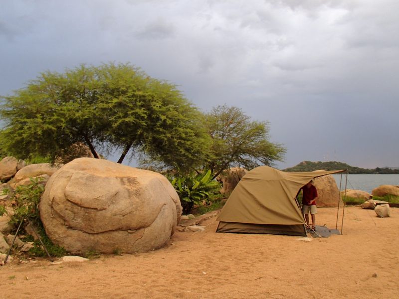 Innoptam uneori in mijlocul savanei, in jurul nostru fiind multe din animalele vazute in timpul zilei. Daca ieseam noaptea din cort ne uitam sa vedem ce fel de ochi sunt in jurul nostru. Daca erau rosii, puteau fi hiene-care se auzeau cu latratul caracteristic. Daca erau albi puteau fi zebre, gazele sau alte ierbivore. Dar nu era nevoie de protectie deosebita fata de animale. Pe malul lacului Naivasha si pe malul raului Mara erau garduri cu electricitate pentru protectie fata de crocodili, dar mai ales fata de hipopotami, care ieseau noaptea la pascut si nu era recomandabil sa ajunga la corturile noastre. In tabara de pe marginea craterului Ngorongoro am avut parte de vizita unui elefant mascul, pasnic, care a trecut pe langa focul nostru de tabara. La aceasta altitudine, noptile sunt  racoroase si e necesar un sac de dormit corespunzator.